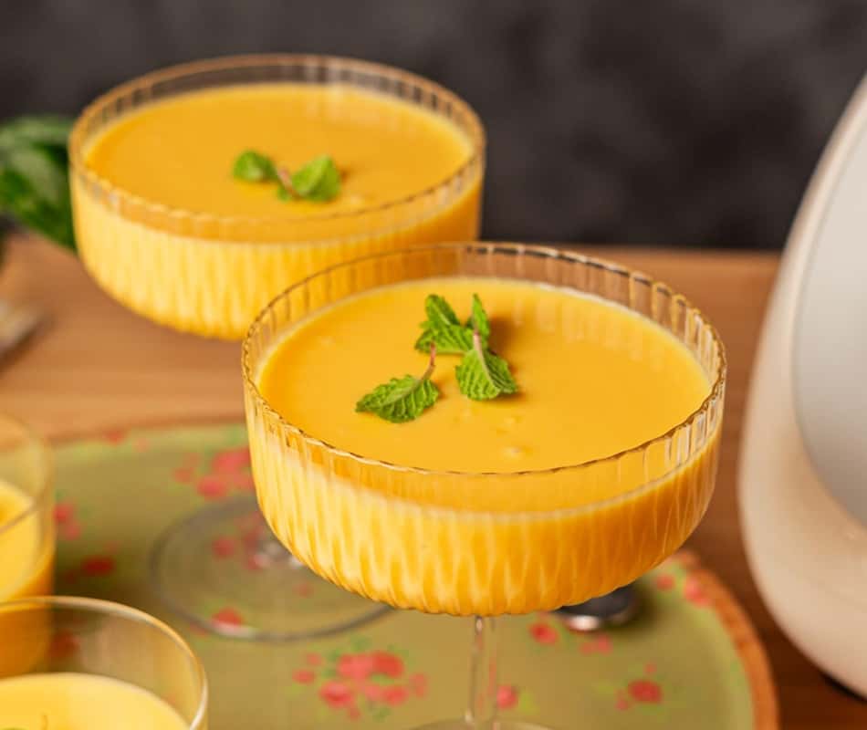 Esse mousse de manga é feito com a própria fruta, o que deixa o sabor totalmente natural e refrescante.