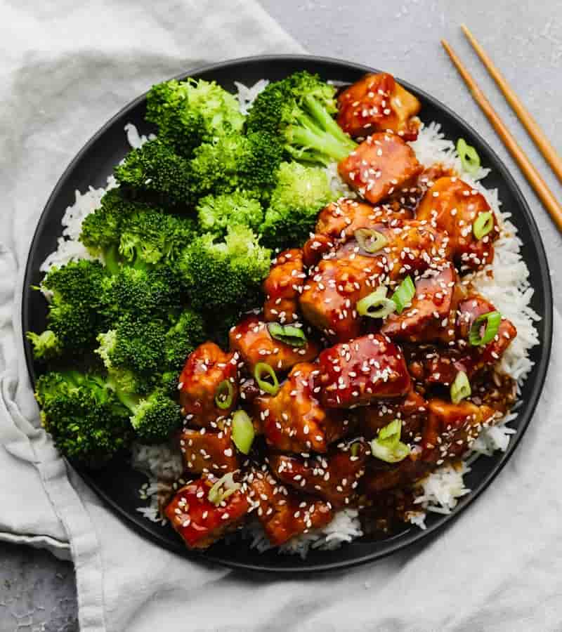 O tofu teriyaki caseiro destaca-se pela sua textura crocante por fora e macia por dentro, ideal para quem busca variedade.